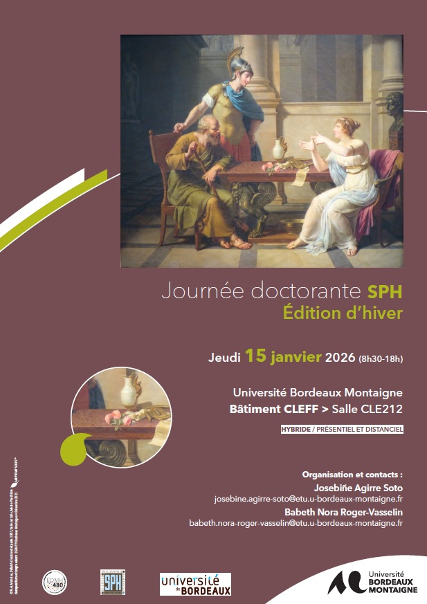 15 janvier 2026, Université Bordeaux Montaigne, bâtiment CLEFF, salle CLE212, 8h30-18hJournée des Doctorant.e.s de SPH, organisée par Josebiñe Agirre Soto (SPH) et Babeth Nora Roger-Vasselin.Télécharger le document lié